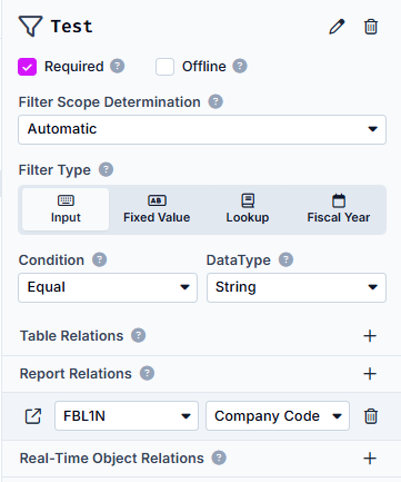 - Required: aktiv (Filter ist erforderlich), inaktiv (Filter ist optional)