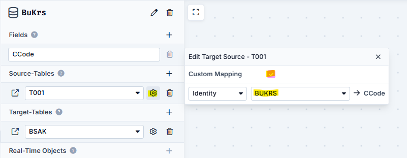 Daher fügen wir zuerst ein Feld CCode ein - würden wir das Feld BUKRS nennen, würde für die Source- und Target-Tables das Auto-Mapping greifen. In diesem Bespiel machen wir das aber erst einmal manuell.
