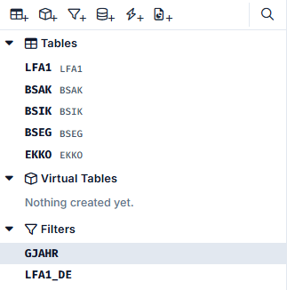Im ersten Schritt filtern wir die Tabelle LFA1 mit dem Filter LFA1_DE. Um diese Ergebnisse zu quasi zwischen zu speichern, erstellen wir das Repository LFA1_Kred_DE.