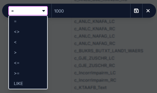 - Wähle im rechten Dropdown den Filter, den Du für das gewählte Feld verwenden möchtest