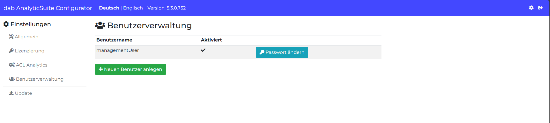 Klicke auf Neuen Benutzer anlegen, um einen neuen Benutzer zu erstellen