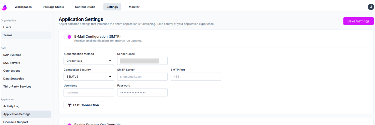 Then test the settings with Test Connection. You will receive a success message if the connection could be established or an error message if the settings are incorrect.