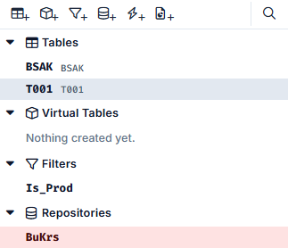 Finally, we create a repository in which these Company Codes are saved after the first step (extraction of all productive Company Codes) in order to be able to carry out the next extraction -> in this example we call the repository BuKrs (the German equivalent of CCode).