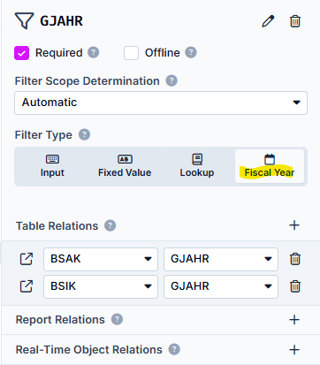 Table Relations: BSAK and BSIK, both with the field GJAHR