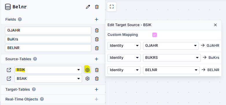 As this information comes from the BSAK and BSIK Tables, we specify these two as Source Tables.