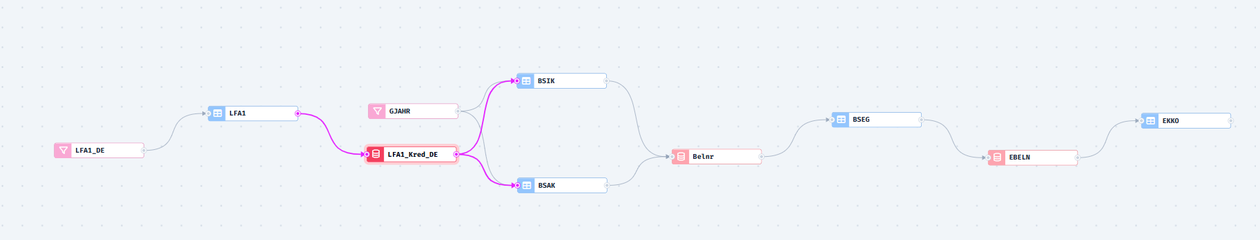 In the first step, we filter the table LFA1 with the filter LFA1_DE. We create the repository LFA1_Kred_DE to store these results temporarily.