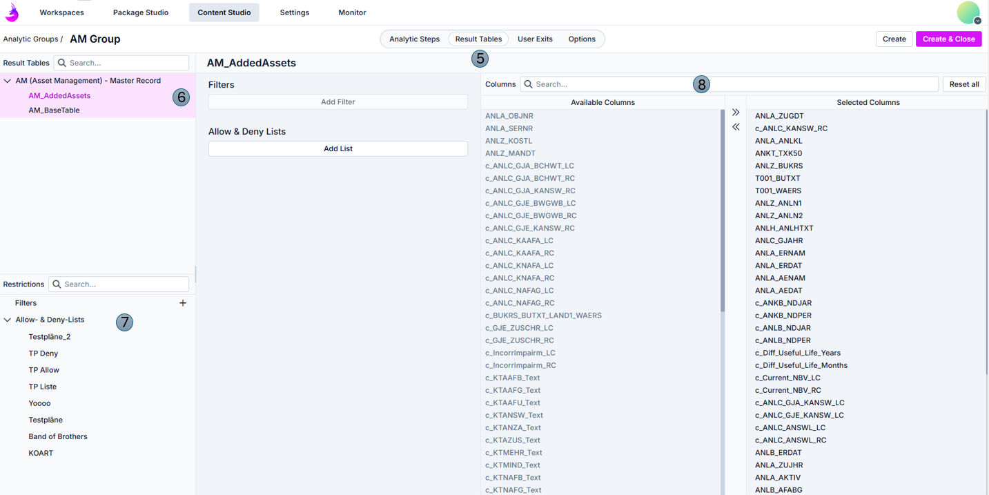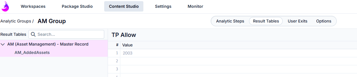 - Analytic Steps: shows you the tables for which User Exits can be created