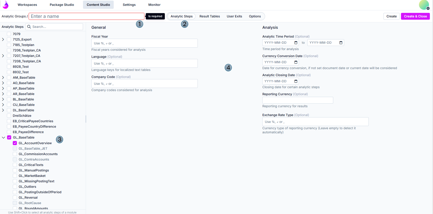 You can create an Analytic Group by clicking on Content Studio > Analytic Groups and on + Analytic Group: