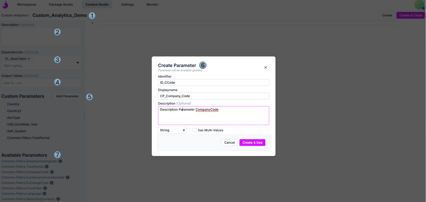 - Create or Create & Close: as soon as all settings are defined, the custom analytic can be saved - it is created with Create & Close, this view is automatically exited and you return to the overview of the existing custom analytics in the table format.